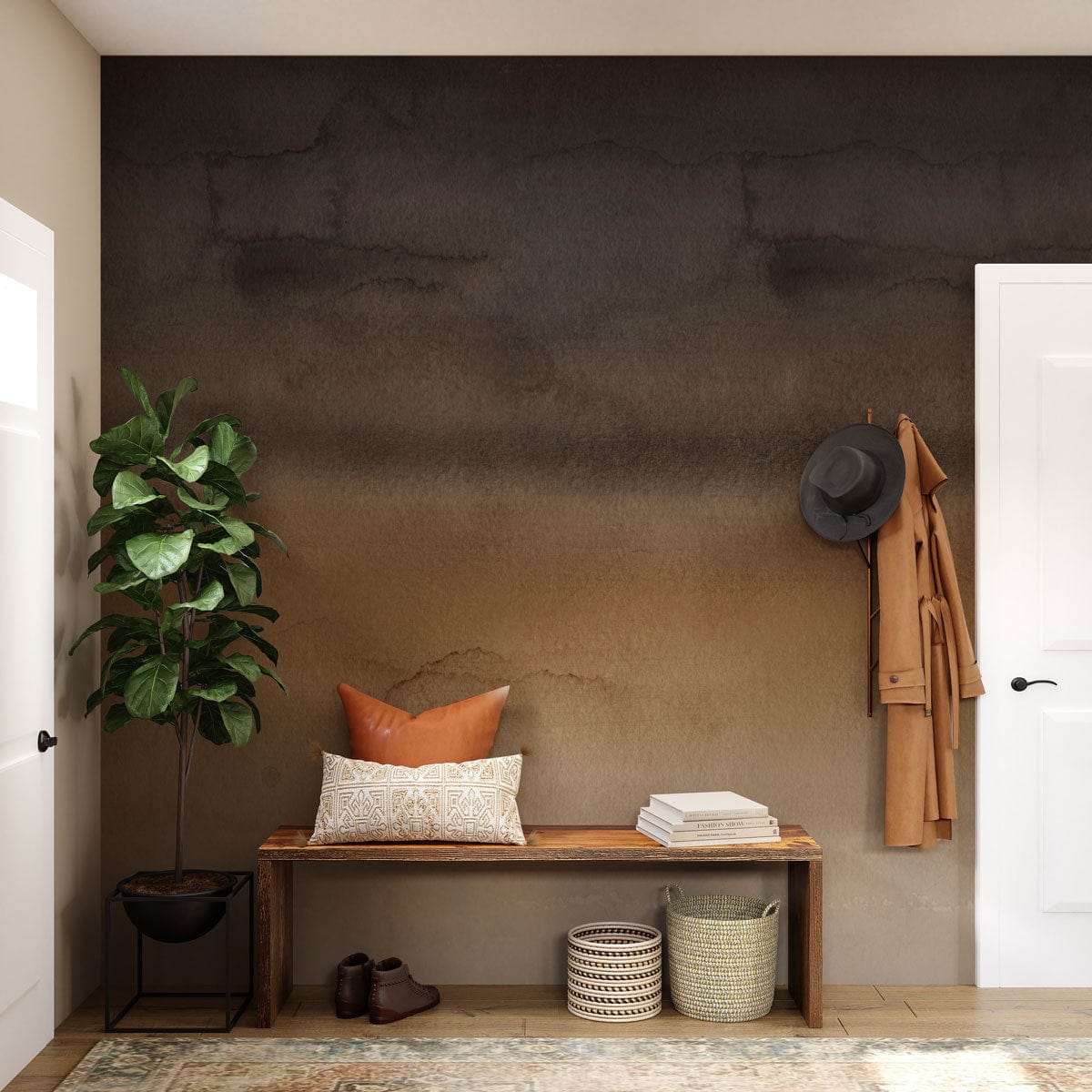 This Watercolor Ombre Layer Wallpaper Mural captures nature's subtle palette with a gentle gradient that transitions effortlessly from deep charcoal to warm ochre, settling into a soothing cream. Its hand-painted appearance exudes artistic elegance, creating an atmospheric backdrop that evokes tranquility and depth. This mural harmoniously blends with a wide array of interior styles, offering a classic aesthetic that complements both contemporary and traditional designs.