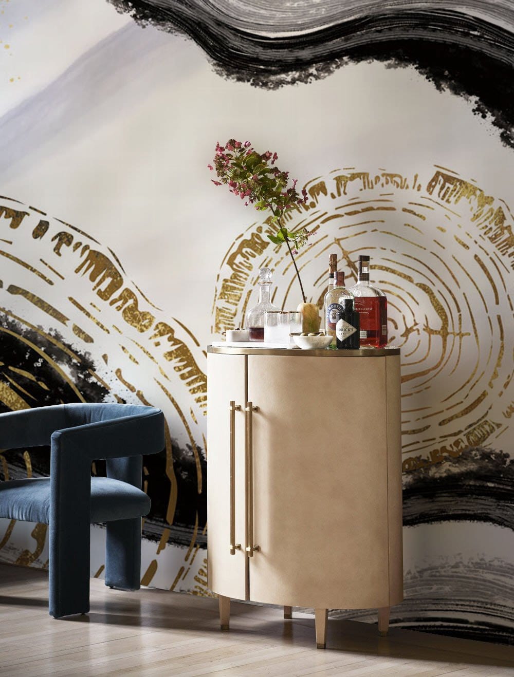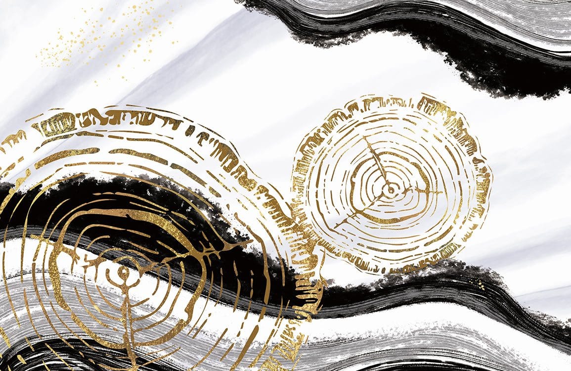 Create a soothing theme at home with this hand-painted neutral black and gold art deco wallpaper mural, a versatile design that will work with a range of rooms and styles. The creative annual ring design is perfect for expressing your creative style while keeping the space minimal. Why not experiment with this abstract style wallpaper in your bathroom, bedroom or living room.