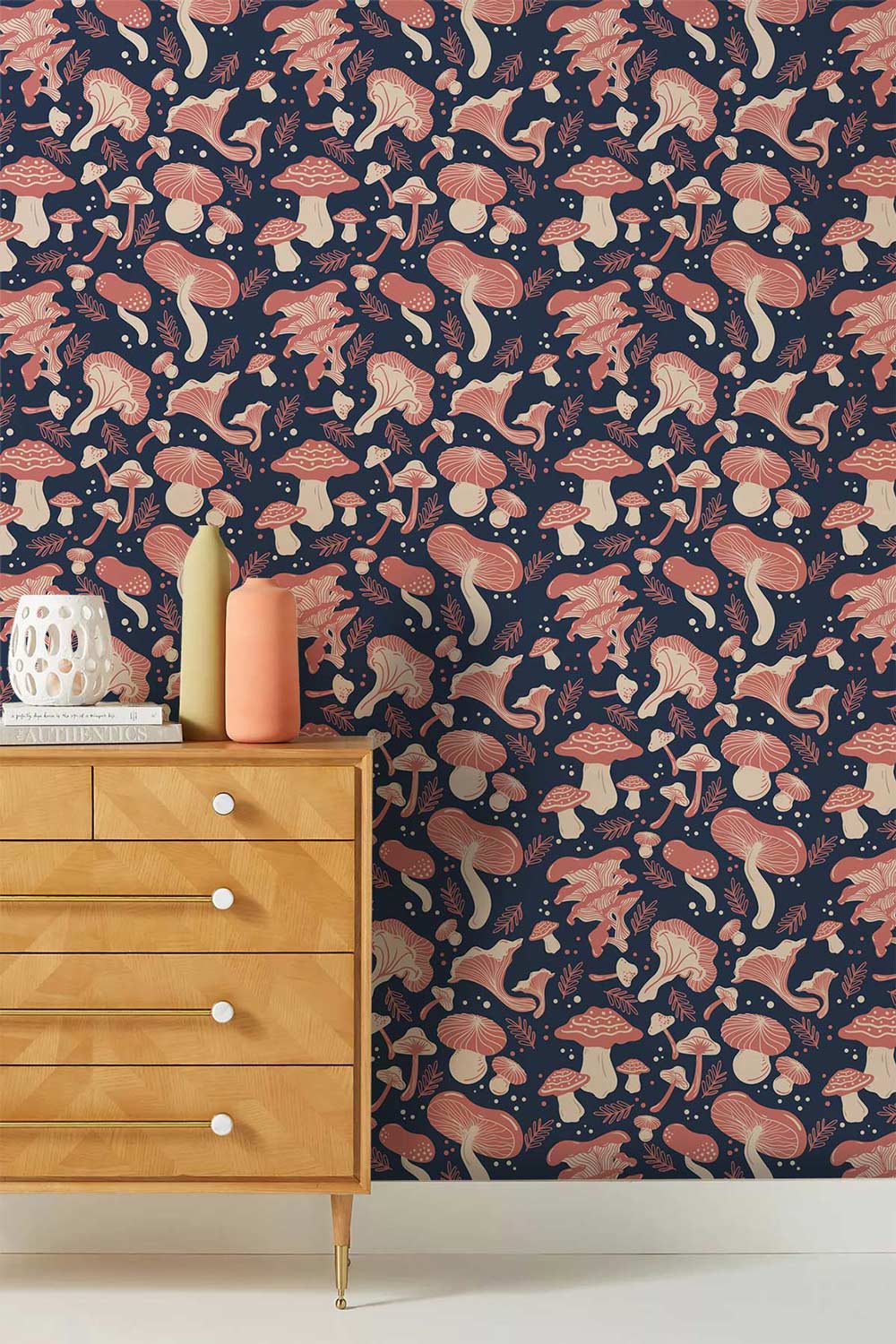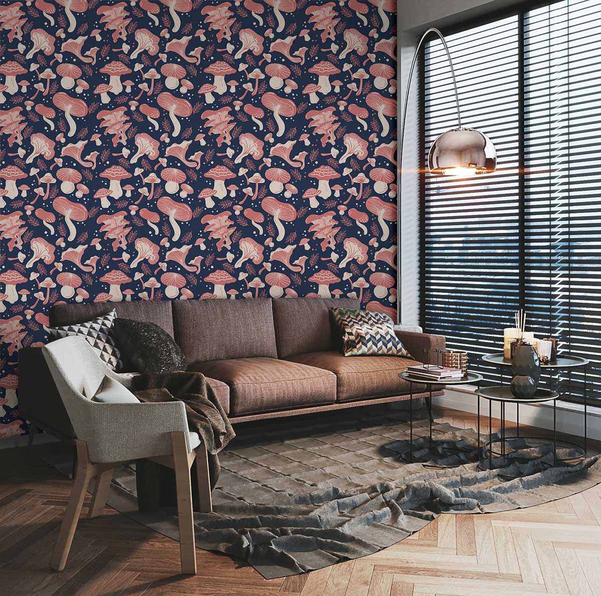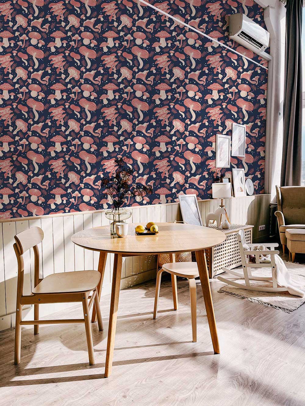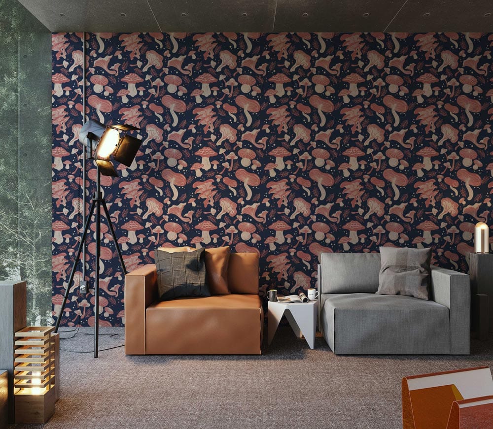 Invite a whimsical charm into your space with the Waving Mushrooms Wallpaper Mural. This captivating design features an intricate tapestry of mushrooms swaying gracefully across a deep, rich canvas. The delicate interplay of forms and textures evokes a sense of timeless fantasy, making it a versatile piece for various settings, from cosy nooks to refined parlours.
