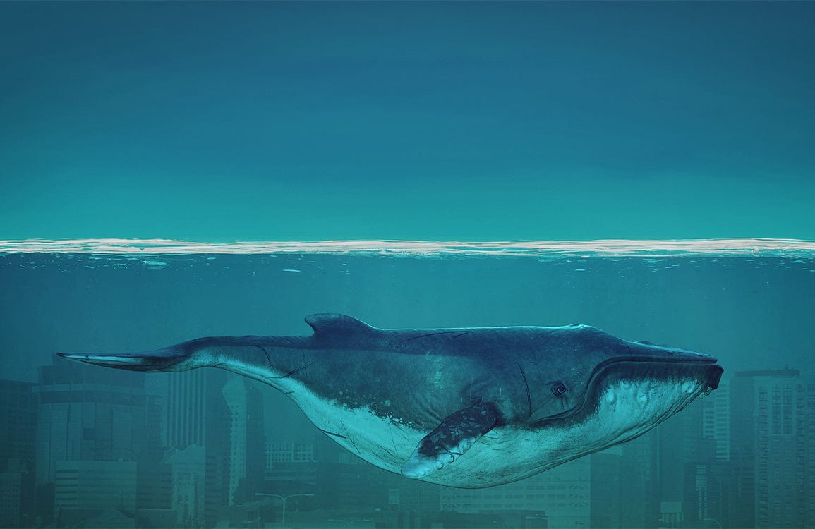 Whale in Ocean City Wallpaper Mural