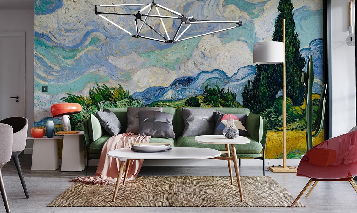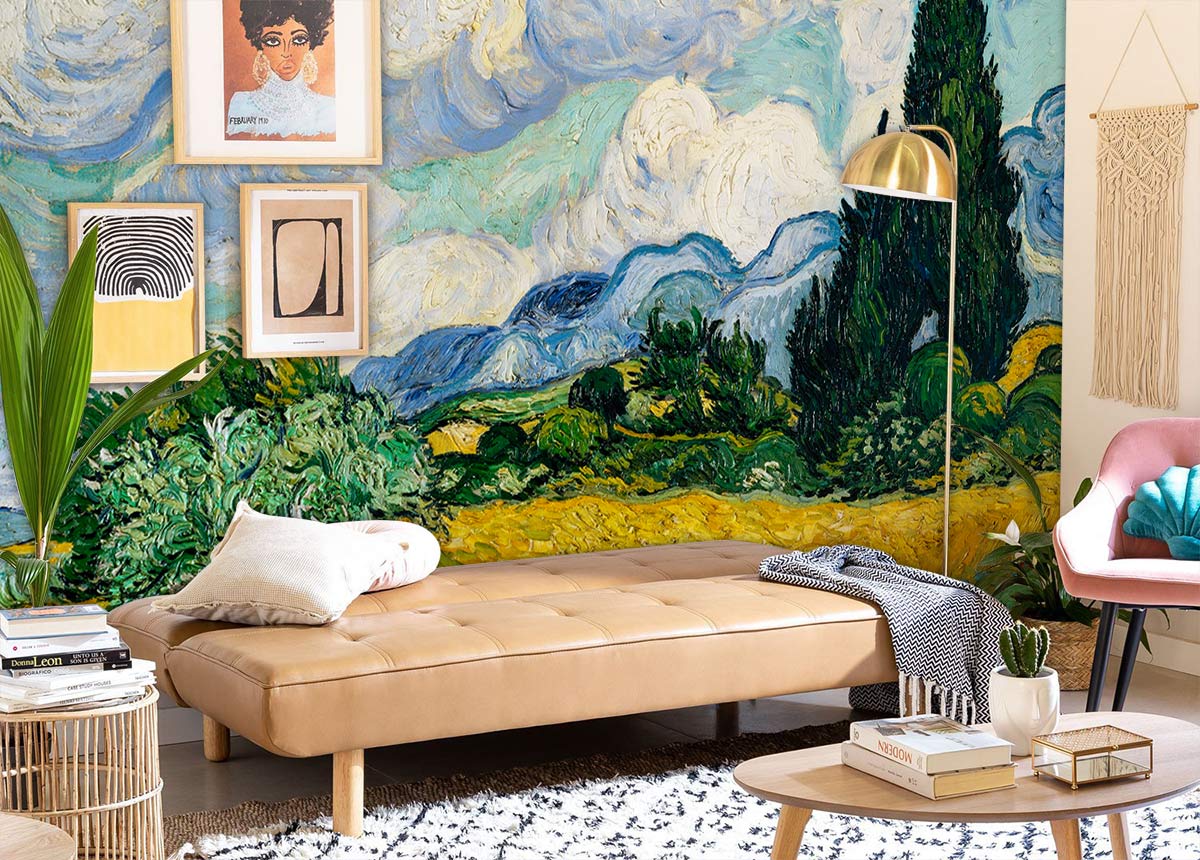 This Wheat Field Wallpaper Mural evokes a serene and timeless landscape, reminiscent of classic paintings. The rich texture and flowing lines capture the essence of nature's tranquillity, while the swirling sky and detailed greenery add depth and vitality. The harmonious blend of artistic strokes and vibrant hues makes it an ideal choice for creating a refined atmosphere in any room.