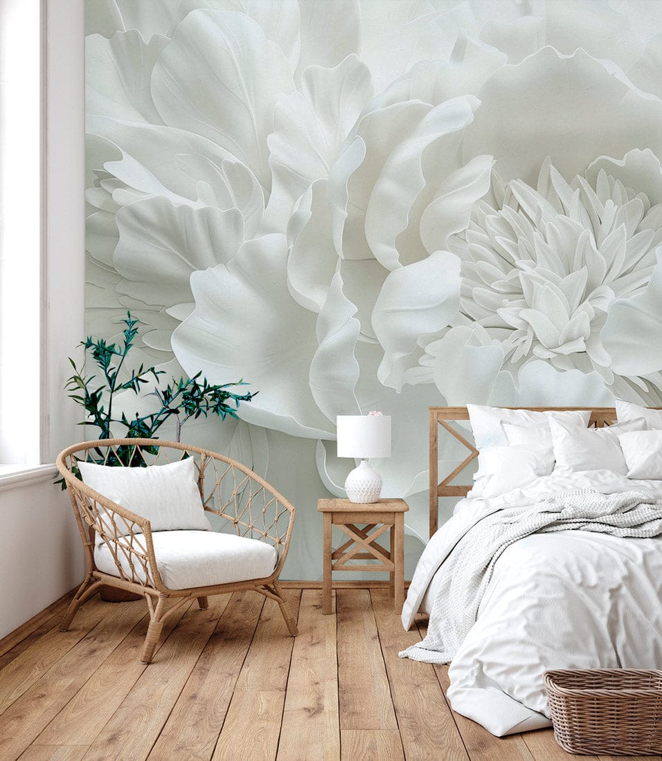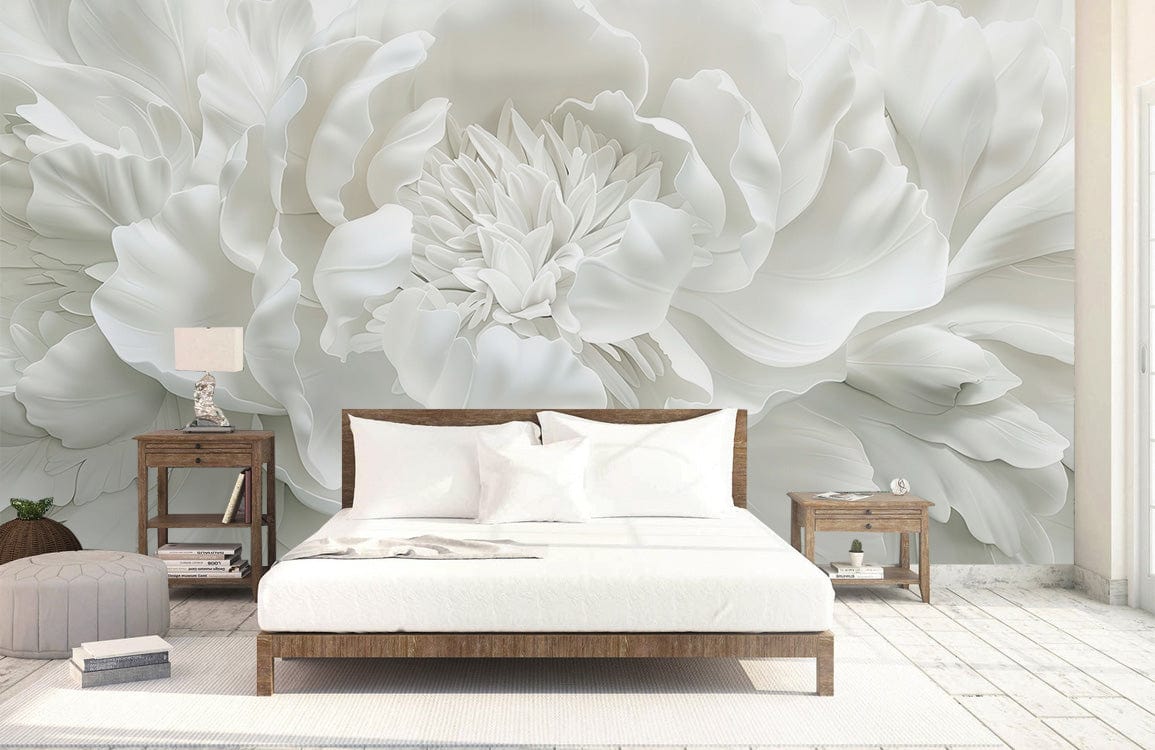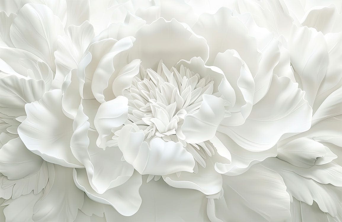 The White Floral Elegance Mural Wallpaper captures the serenity and grace of nature with its intricate peony design. Each petal unfolds in delicate detail, creating a sumptuous three-dimensional effect that elevates any room. The elegant composition of soft whites and greys exudes a refined sophistication, seamlessly complementing both classic and contemporary interiors. Perfectly suited for spaces where beauty and quietness are desired, this mural delivers an understated opulence, making it an exquisite choice for enhancing your home's ambience.