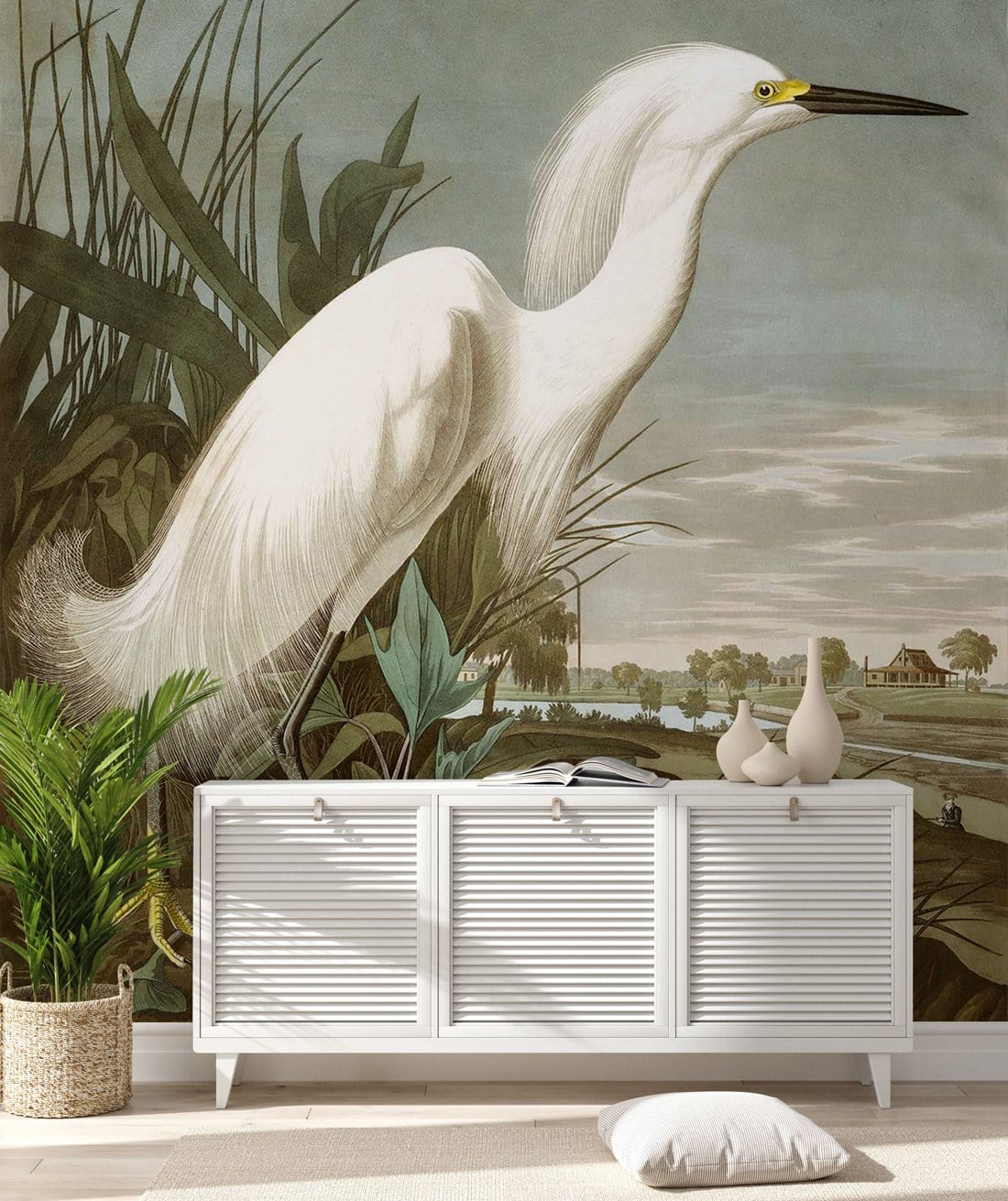 Immerse your space in the serene beauty of nature with the White Heron Wallpaper Mural. This exquisite design features the graceful heron, meticulously detailed against a backdrop of lush foliage and soft skies. The artwork's delicate brushstrokes and subtle textures evoke an atmosphere of tranquillity and poise, making it an excellent choice for those seeking to enrich their interiors with a touch of sophistication.