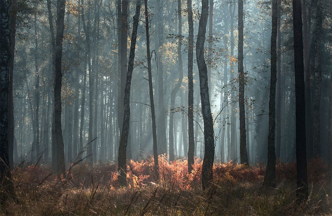 Immerse yourself in the serene beauty of nature with the Wild Forest Wallpaper Mural. This exquisite mural captures the mystique of a dense forest, with delicate beams of light filtering through the towering trees and rich undergrowth. The artwork's intricate details are portrayed in muted, earthy tones, creating an atmosphere of quiet elegance and natural allure, seamlessly fitting both classic and contemporary interiors.