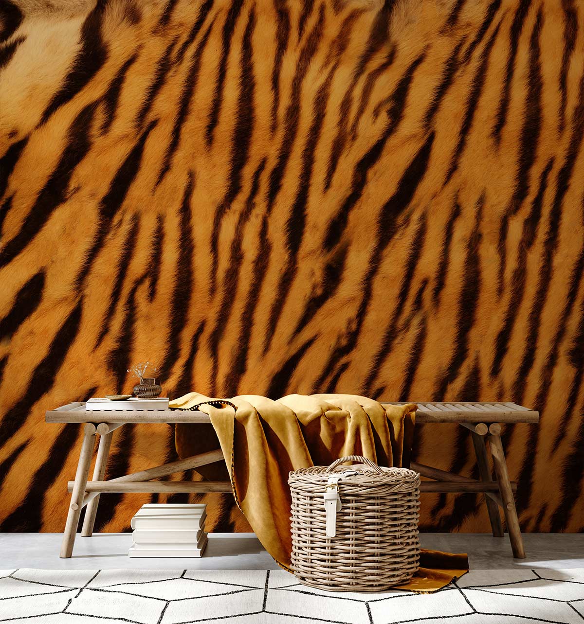 Immerse your space in the captivating allure of the Wild Tiger Fur Wallpaper Mural. This design, with its intricate stripes and textures, embodies the majestic beauty of a tiger's coat. The rich patterns and tactile quality bring a sense of adventure and sophistication, making it a striking backdrop for diverse interior settings.
