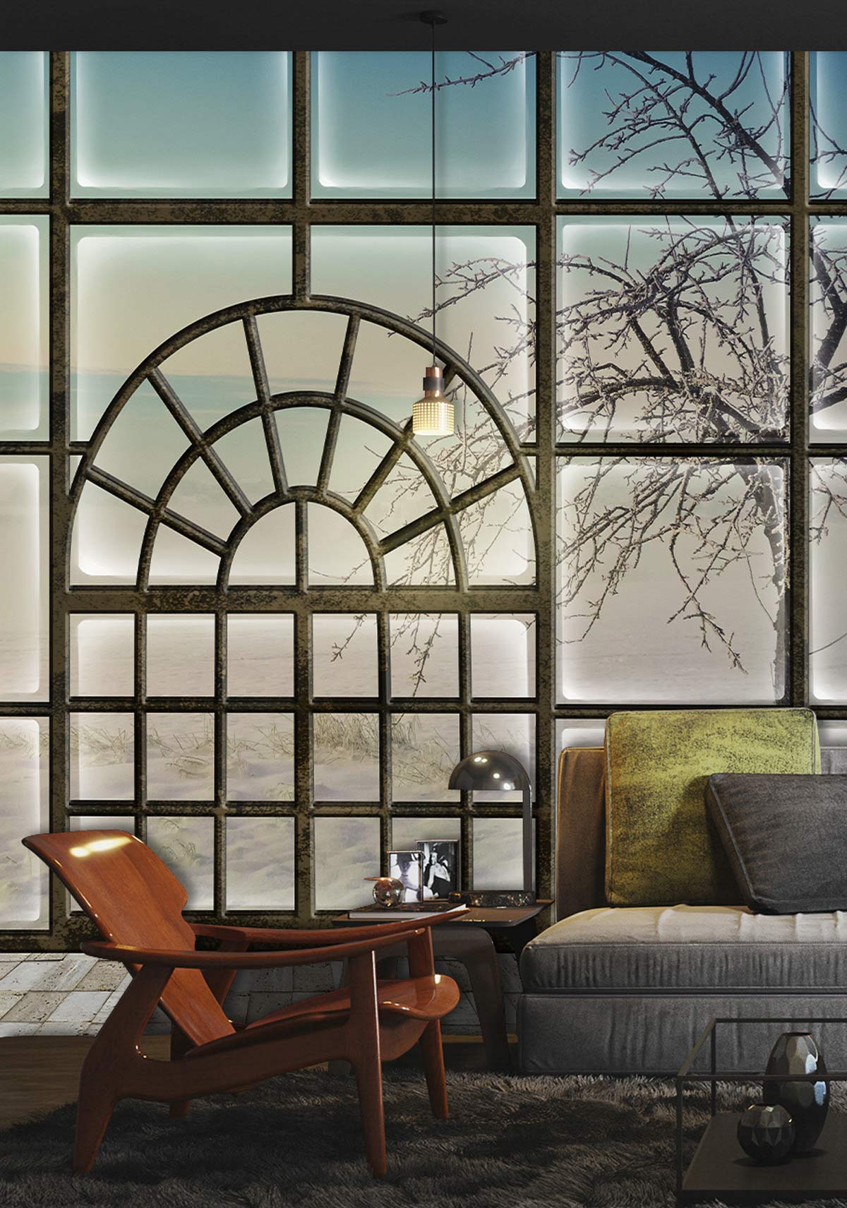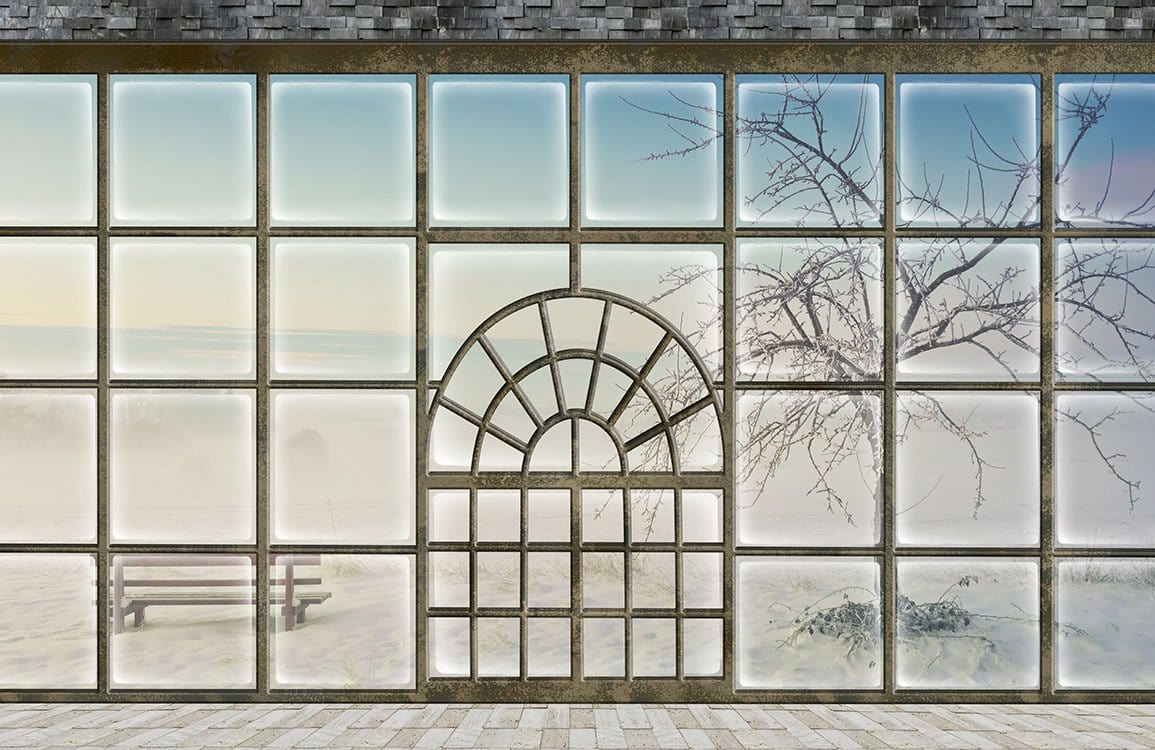 Immerse your space in a serene winter landscape with the Wilderness Wallpaper Mural. This design features a frosty panorama through antique grid windows, exuding a timeless and sophisticated charm. Meticulously detailed, the bare branches and gentle snowflakes create a tranquil scene that invites contemplation. Perfectly suited to a variety of interiors, this mural adds a unique sense of depth and history.