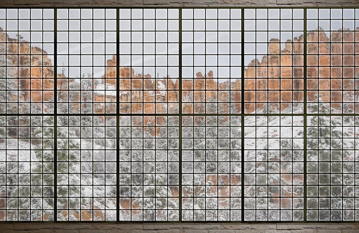 The Window Snow Mountain Wallpaper Mural invites a serene panorama of snow-dusted peaks into your living space. Its intricate grid design mimics a classic window frame, creating an illusion of expansive vistas beyond. The mural's blend of muted greys, striking terracotta, and evergreen hues captures the raw, untouched beauty of nature, offering a sophisticated backdrop for any room. This timeless piece effortlessly complements both modern and rustic interiors, infusing them with a sense of calm and grandeur.