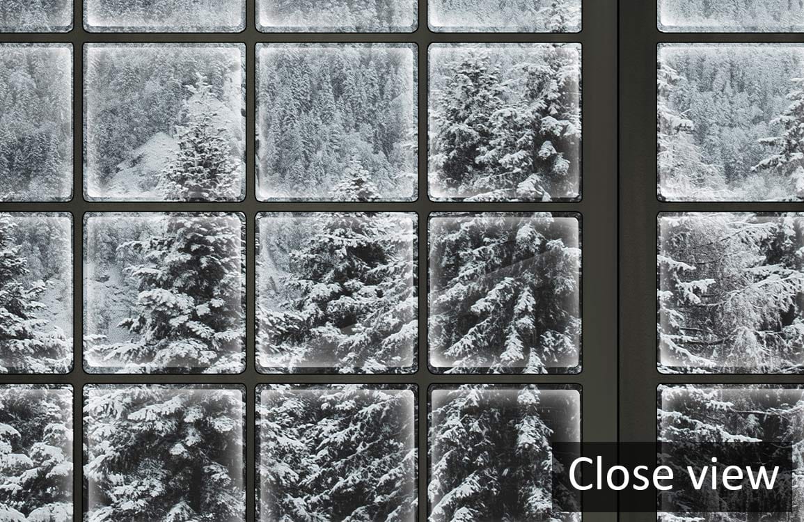 Look through the window and enjoy the beautiful snow scenery with this winter landscape of snowy forest view through wallpaper mural. Add a peaceful touch and expand your room space with snowy pine forest. Perfect nature wallpaper for your bedroom and living room.