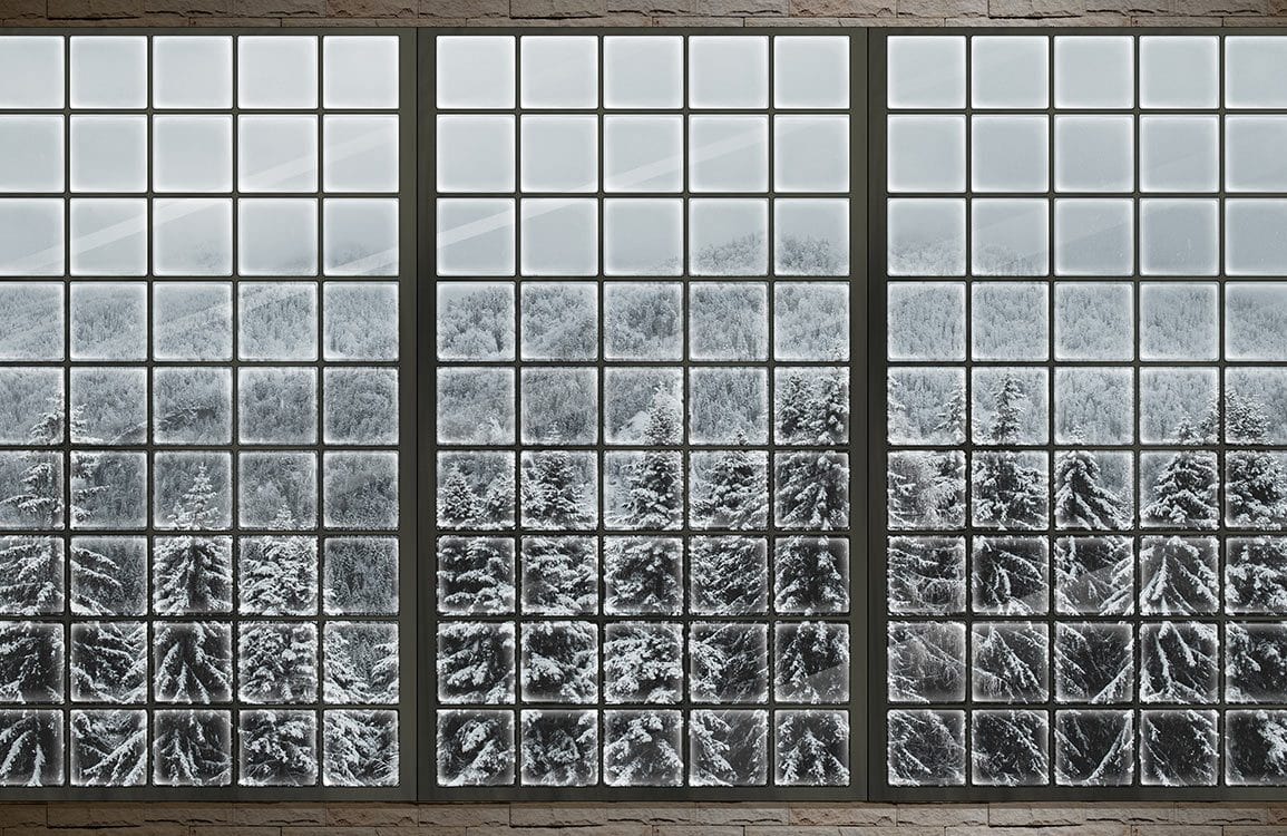 Immerse yourself in the serene beauty of a winter wonderland with the Snowy Forest Wallpaper Mural. This artwork captures the essence of a tranquil, snow-laden forest visible through elegant grid windows, offering a seamless blend of nature's quiet grandeur and refined interior style. Its detailed rendering of frosted pine trees envelops any room in a peaceful and sophisticated ambience, making it an ideal backdrop for classic and contemporary designs.