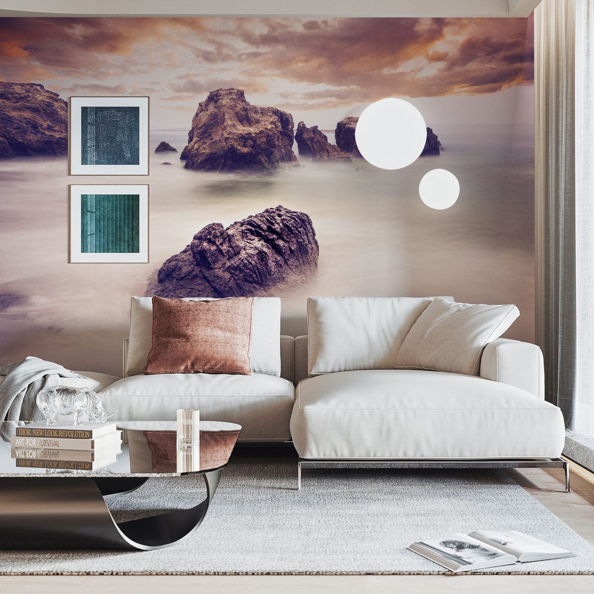 The Wonderland Rock Wallpaper Mural captures the serene majesty of coastal landscapes with its soft, dreamy portrayal of mist-cloaked rocks and tranquil seas. This mural invites a sense of calm with its ethereal hues and detailed textures, making it a sophisticated addition to any interior. Its timeless design seamlessly complements both classic and contemporary spaces, offering a subtle yet impactful statement.