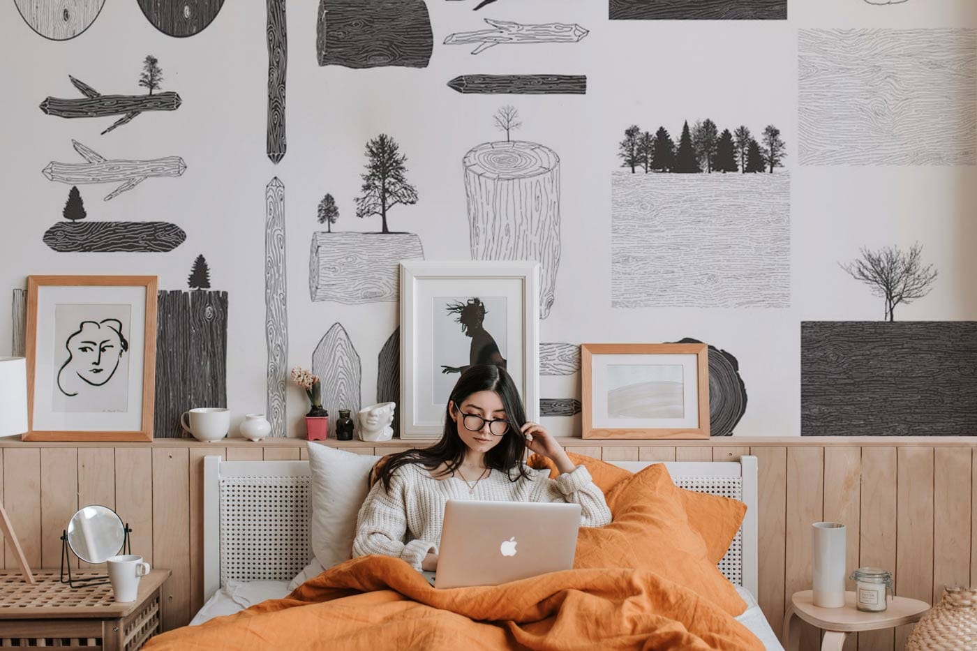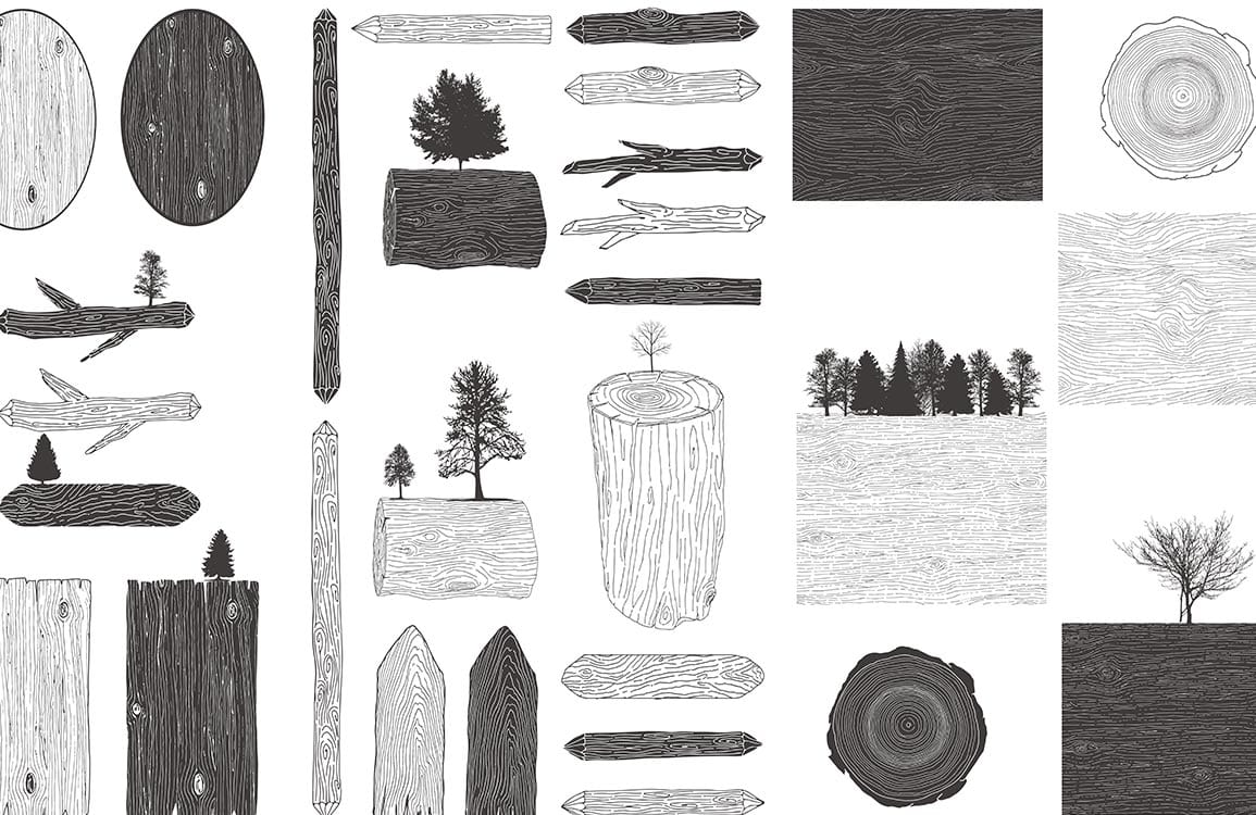Embrace a harmonious blend of nature and artistry with this Wood Shapes Wallpaper Mural. Its intricate patterns feature natural textures of wood and minimalist tree silhouettes, creating a serene yet sophisticated ambience. Perfectly suited for a variety of settings, this mural exudes an organic charm that effortlessly combines with both modern and traditional interiors.