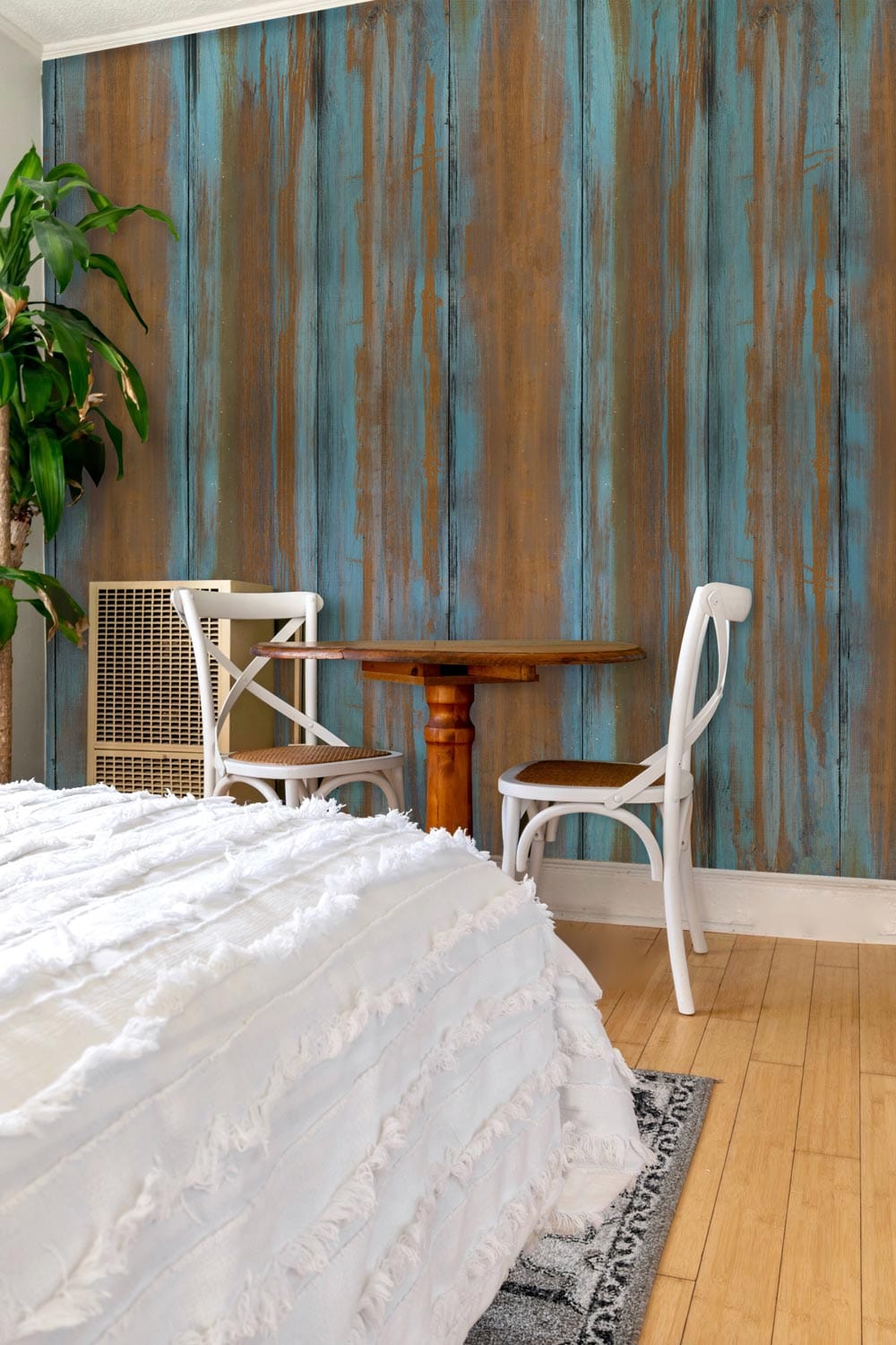 This Worn Blue Wood Wallpaper Mural is a sleek and practical way to refresh your space. The combination of weathered wood and faded blue tones produce a sophisticated design that complements almost any aesthetic or colour palette. It is used to provide depth to your living area, bedrooms, or children's space. This high-quality mural wallpaper is simple to install, repositionable, and removable, perfectly suited for tenants who are planning to move shortly.