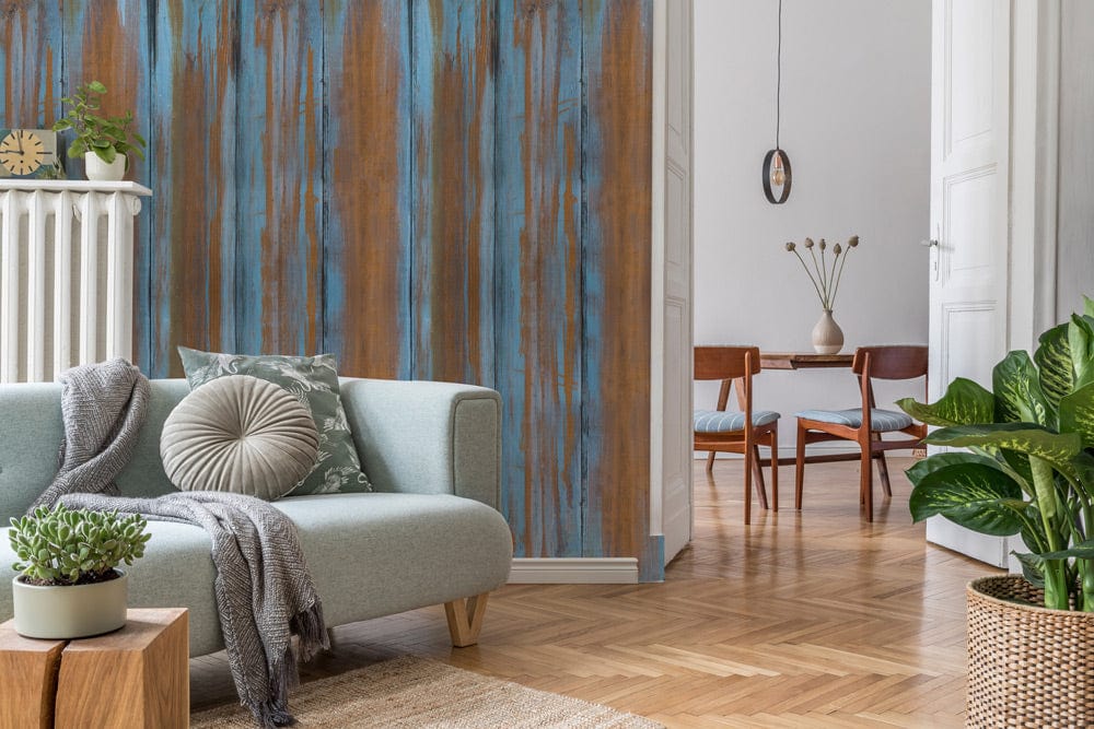 Worn Blue Wood Wallpaper Mural