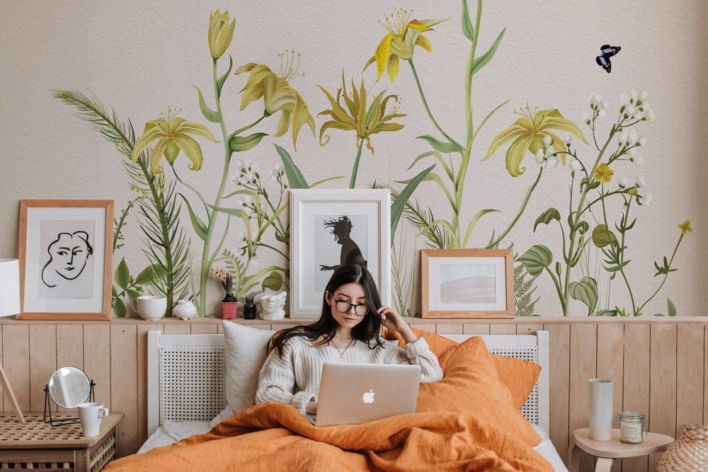 Give any room a warm and welcoming look with this Yellow Flower Bushes Mural Wallpaper. The design features vivid, realistic images of yellow flower bushes in bloom that are best suited for a bedroom or playroom, accentuating your child's imagination and creativity. This yellow floral layout can make your room lively and romantic while providing warmth and comfort to your space. Beautiful and charming, you can use this wall decor in your bedroom, living room, or kitchen.