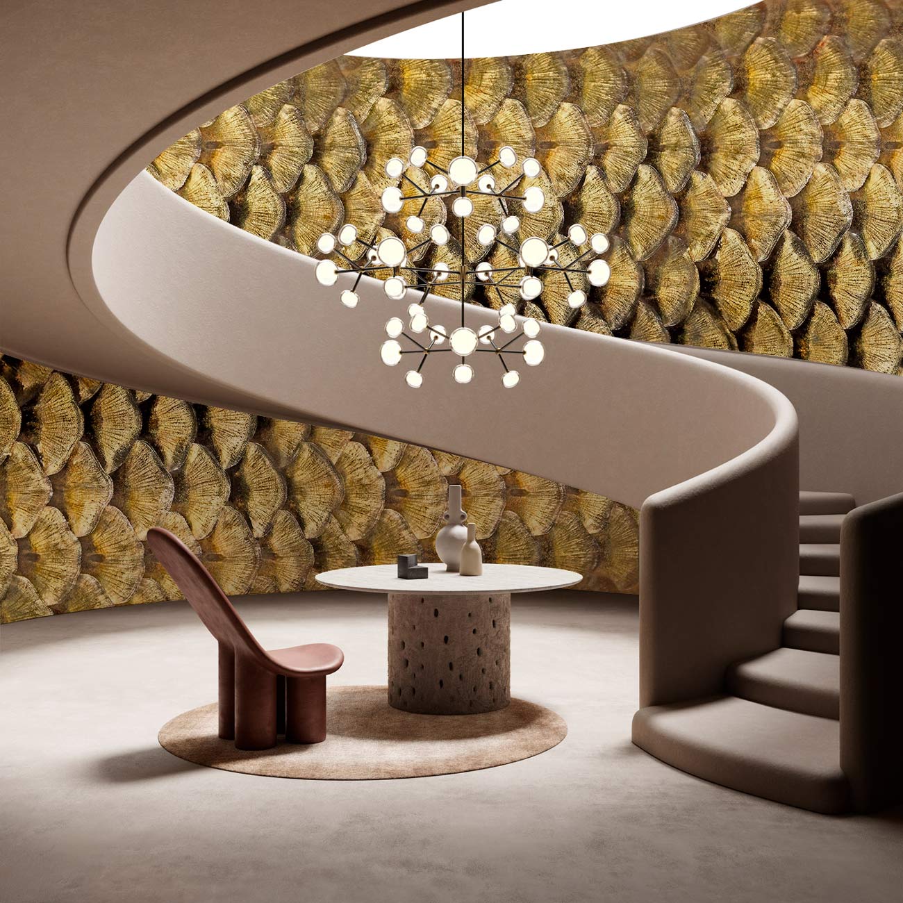 Embrace the majestic allure of the Golden Fish Scale Wallpaper Mural, a stunning blend of intricate patterns and rich hues that evoke the elegance of timeless art. The shimmering gold and earthy tones dance across the surface, creating a textured masterpiece that adds depth and character to any space. This mural effortlessly complements a range of interiors, offering a sophisticated backdrop that echoes both luxury and nature.