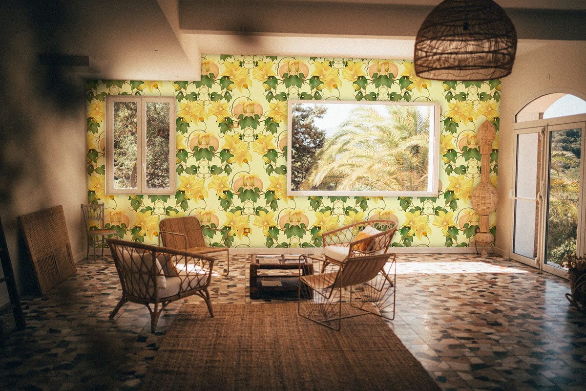 Immerse your interiors in the enchanting elegance of the Pumpkin & Flowers Wallpaper Mural. This design integrates the delicate charm of blooming florals with the rustic allure of pumpkins, creating a captivating tapestry of nature's splendour. Rich in detail, the mural's harmonious pattern invites a serene yet vibrant ambience that complements a range of interior styles.
