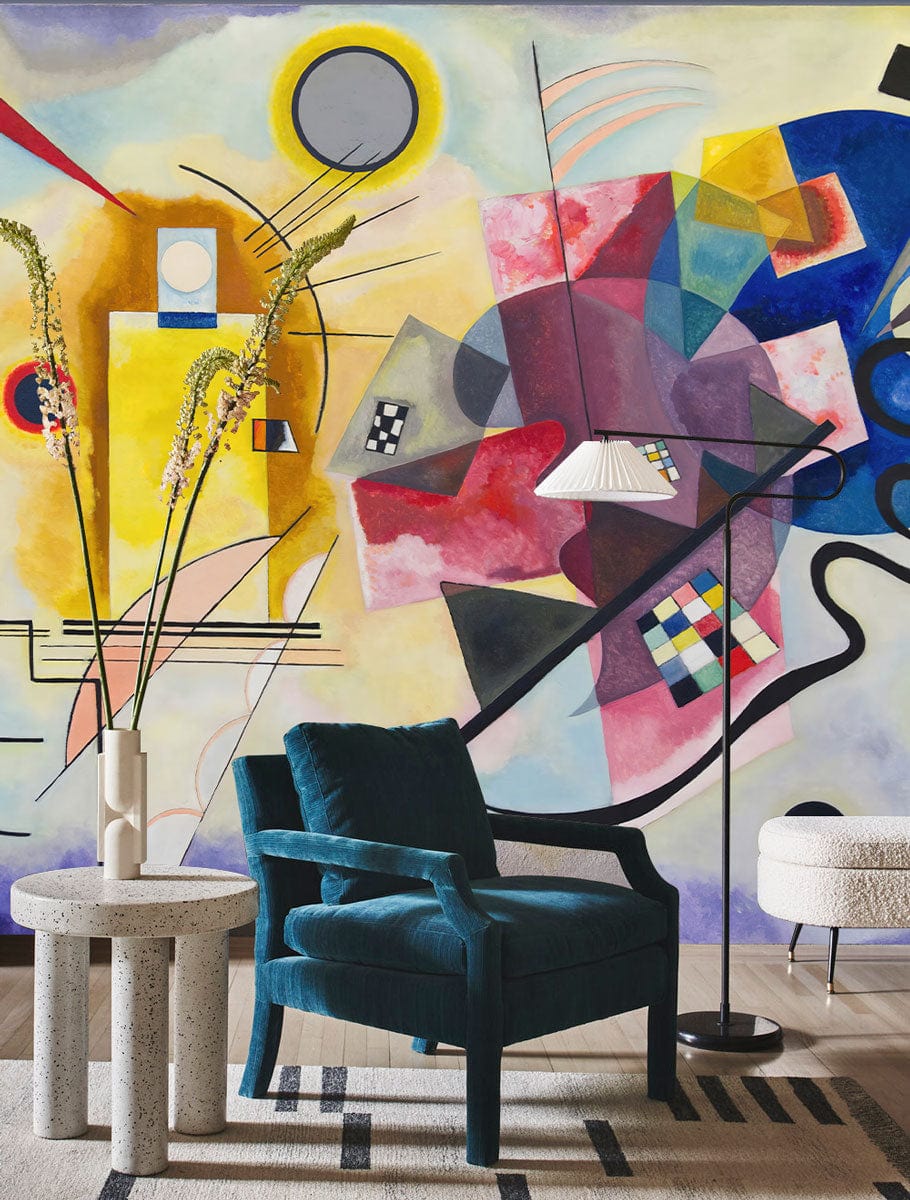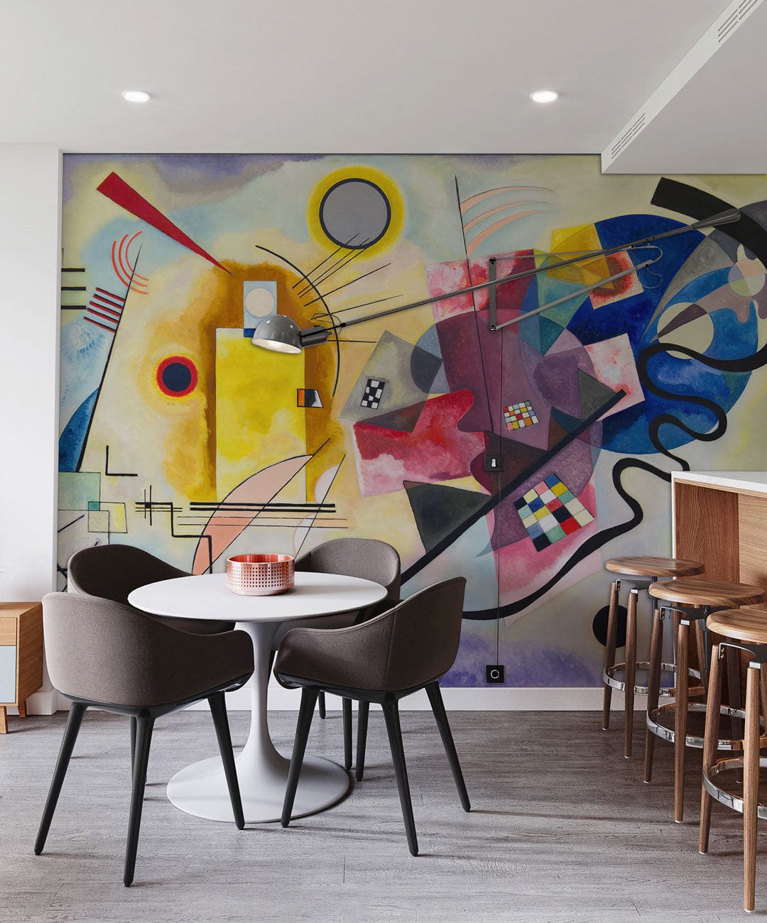 Immerse your space in a symphony of abstract artistry with the Yellow Red Blue Wallpaper Mural. This mural features a dynamic interplay of geometric forms and vibrant colour splashes, creating a stunning visual tapestry. The composition is both bold and sophisticated, adding depth and character to any interior setting, while its artistic detail invites contemplation and conversation.