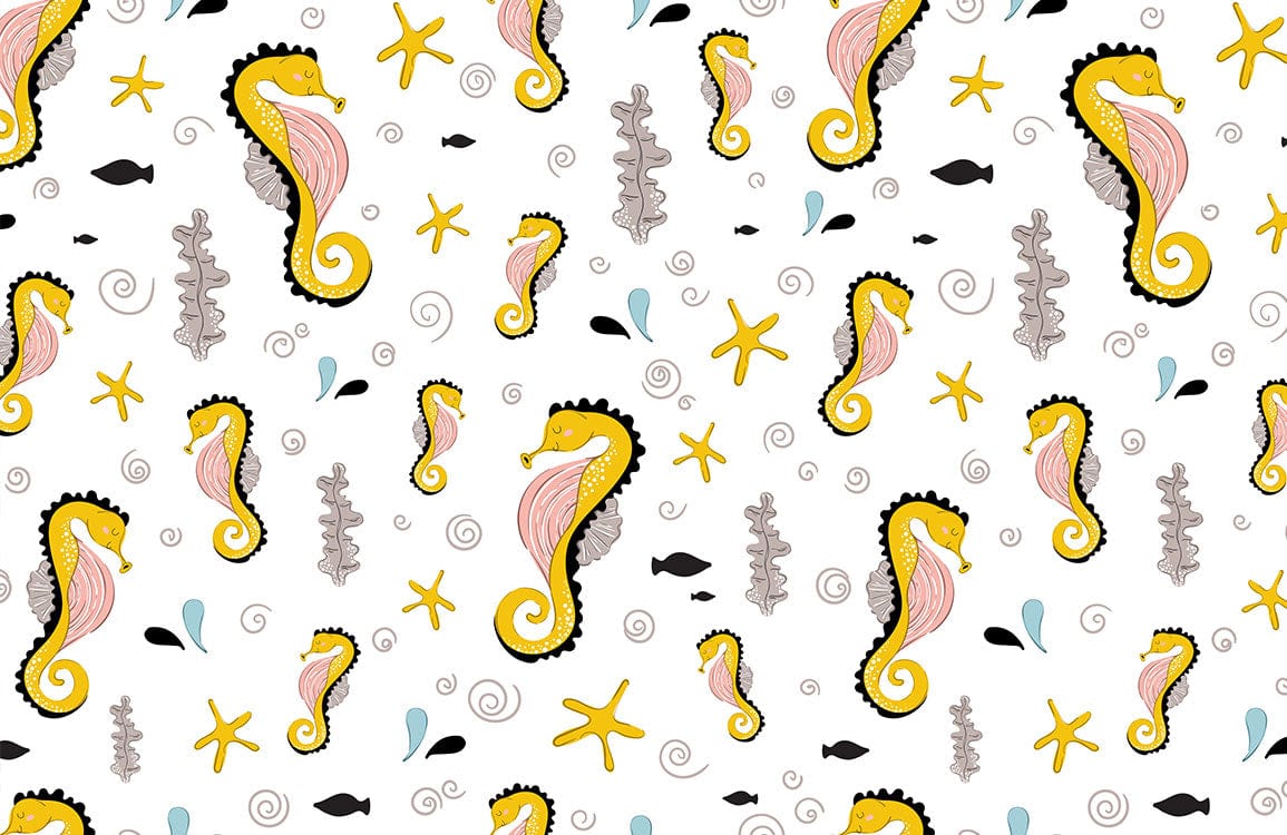 Have a splash of colour to any room with our Seahorses and Starfishes Mural Wallpaper. Perfect for both kids' rooms wallpaper and nurseries wall mural, this wallpaper features marine-inspired patterns of smiling starfish, seahorses, and ocean reefs, perfect for decorating your little ones' ocean-themed room. Made up of bright yellow colours on a plain white background, this cheerful mural offers an instant mood lift to your bedroom, living room, bathroom, or hallway. Add this wallpaper to your home and make it as colourful as the sea!