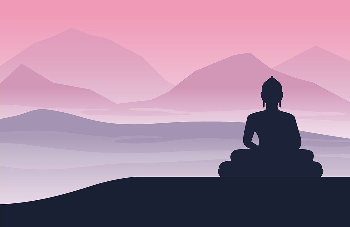 Immerse your space in tranquillity with the Zen Way Wallpaper Mural, featuring a serene silhouette meditating against soft pink and purple gradient mountains. The elegant composition exudes calmness and introspection, making it a sophisticated choice for any setting.